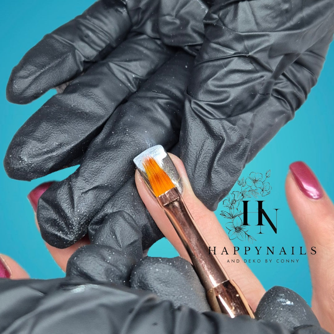 Verwendet hierfür lieber ein klares Aufbaugel und eine saubere Zelette, so bleibt euer Pinsel schön geschmeidig.