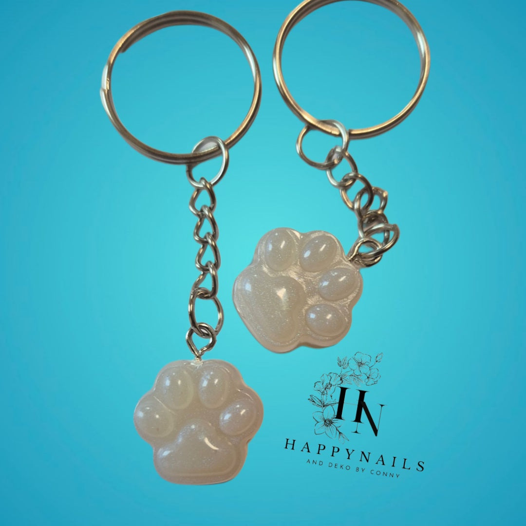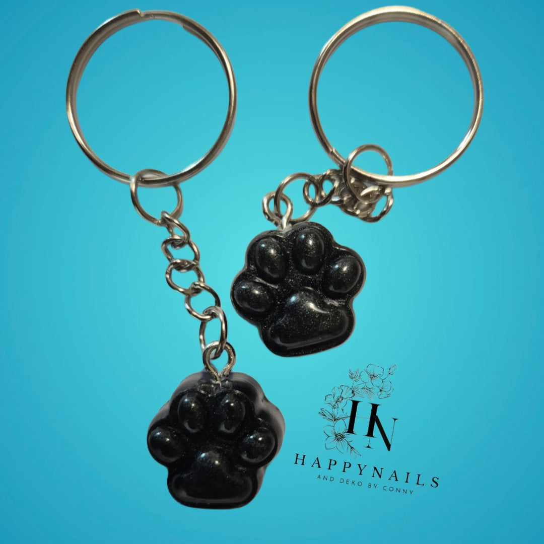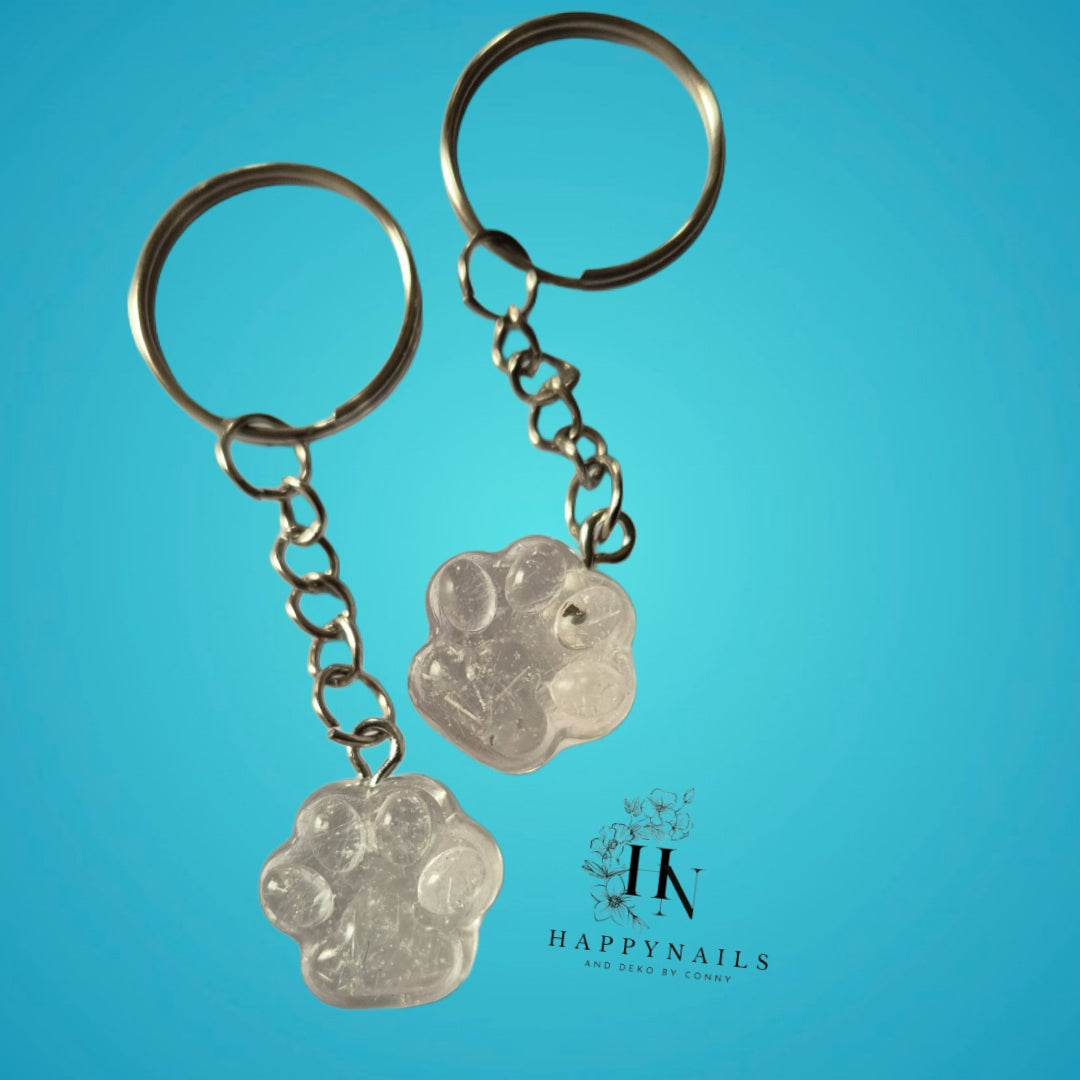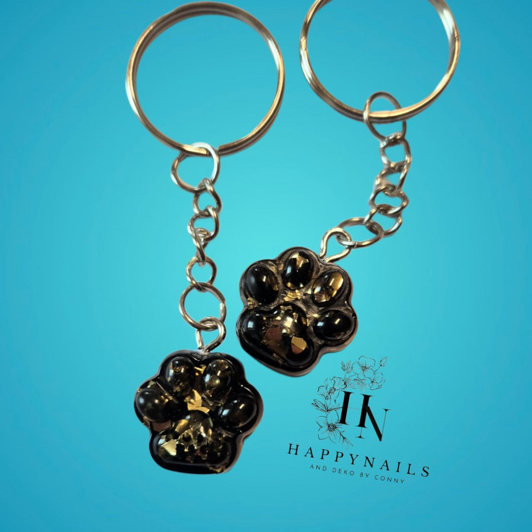 Handgemachte Hundepfoten Schlüsselanhänger aus Epoxidharz in verschiedenen Farben.