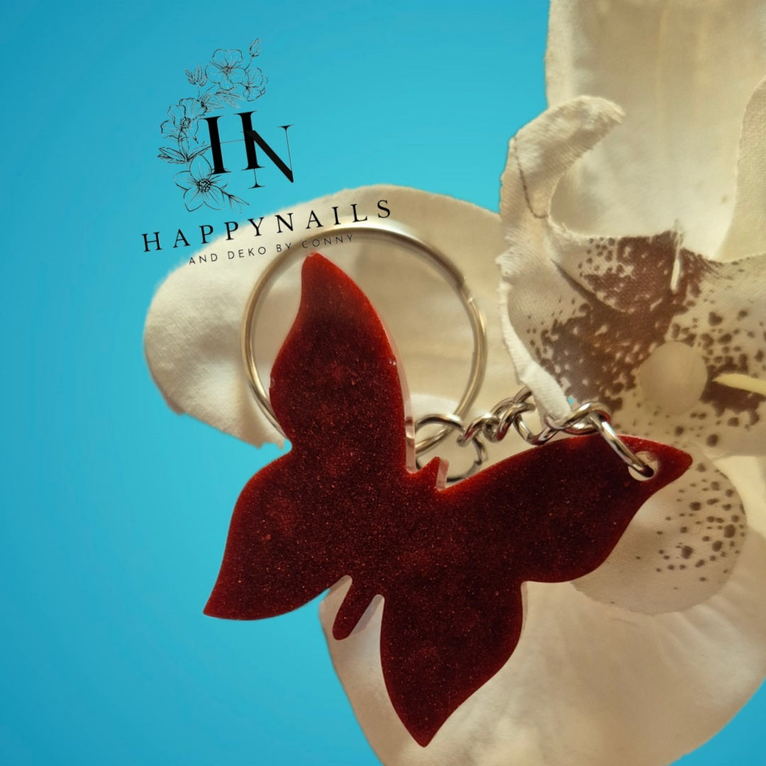 Handgemachte Schmetterling Schlüsselanhänger aus Epoxidharz in verschiedenen Farben.